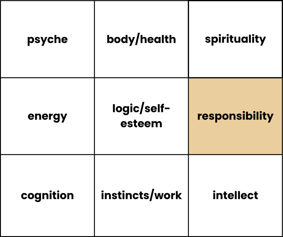| 2 Energy/Potential | 5 Intuition/Self-Esteem | 8 Duty/Responsibility |
